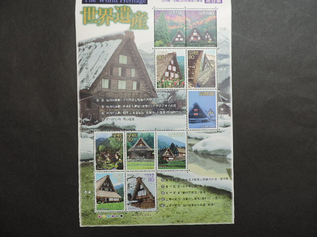 > ★白川郷・五箇山の合掌造り集落★ 世界遺産シリーズ・第9集 2002年 80円切手×10枚 800円分 新品・未使用