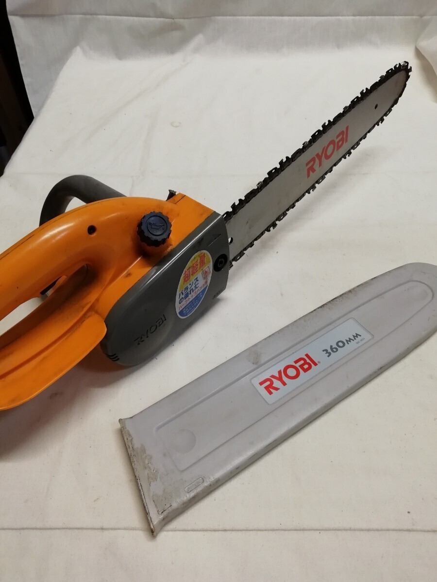 - g_t K961 電動チェンソー リョービ CS-3600 電動工具 一部破損あり 動作品 木工 RYOBI 現状 中古