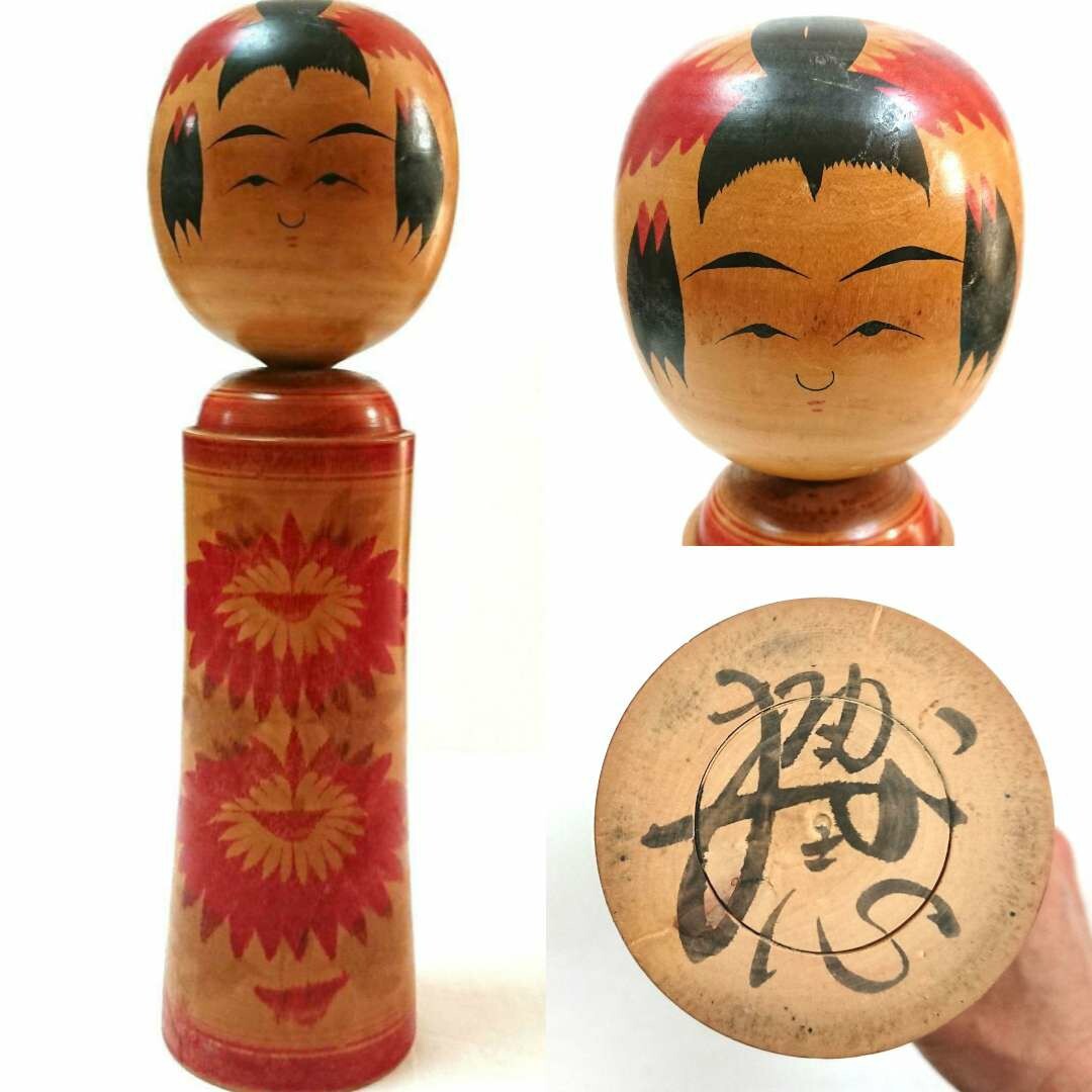 > こけし 鳴子こけし 工芸品 昭和レトロ アンティーク 宮城県 伝統こけし 鳴子系 岡崎博志 遊佐博志 工人 土産 伝統品 木製 首が鳴る