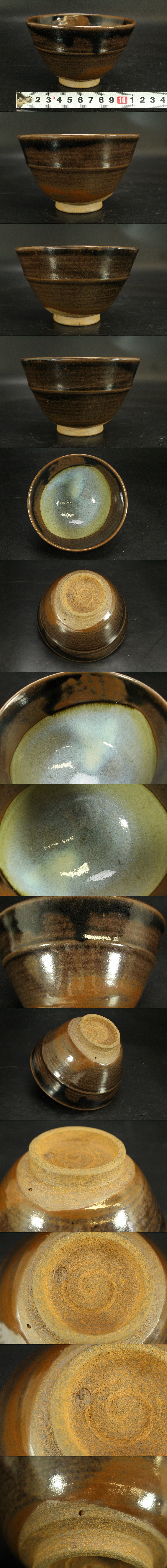- 【銀閣】茶道具 膳所焼 茶碗 美品 旧家蔵出 送料無料(ZE426)