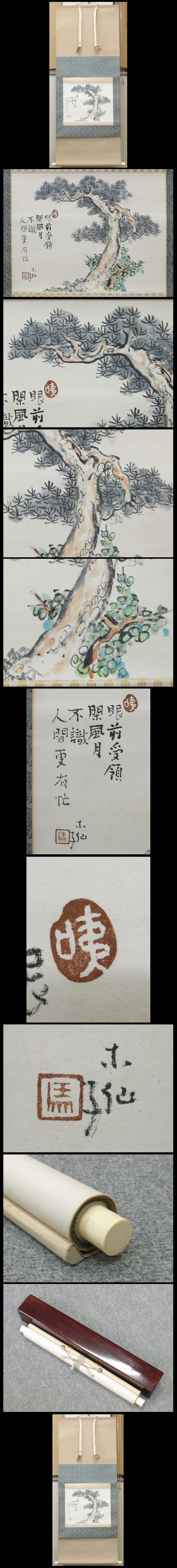 - 【心庵】掛軸 須賀木仙 紙本 松図/肉筆 付箱 真作 富山県 B732