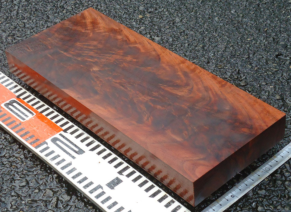 ・濃い茶黒色、虎杢多で非常に見栄えある素材です。通常のブラックウォルナットより硬質で重量感があります。