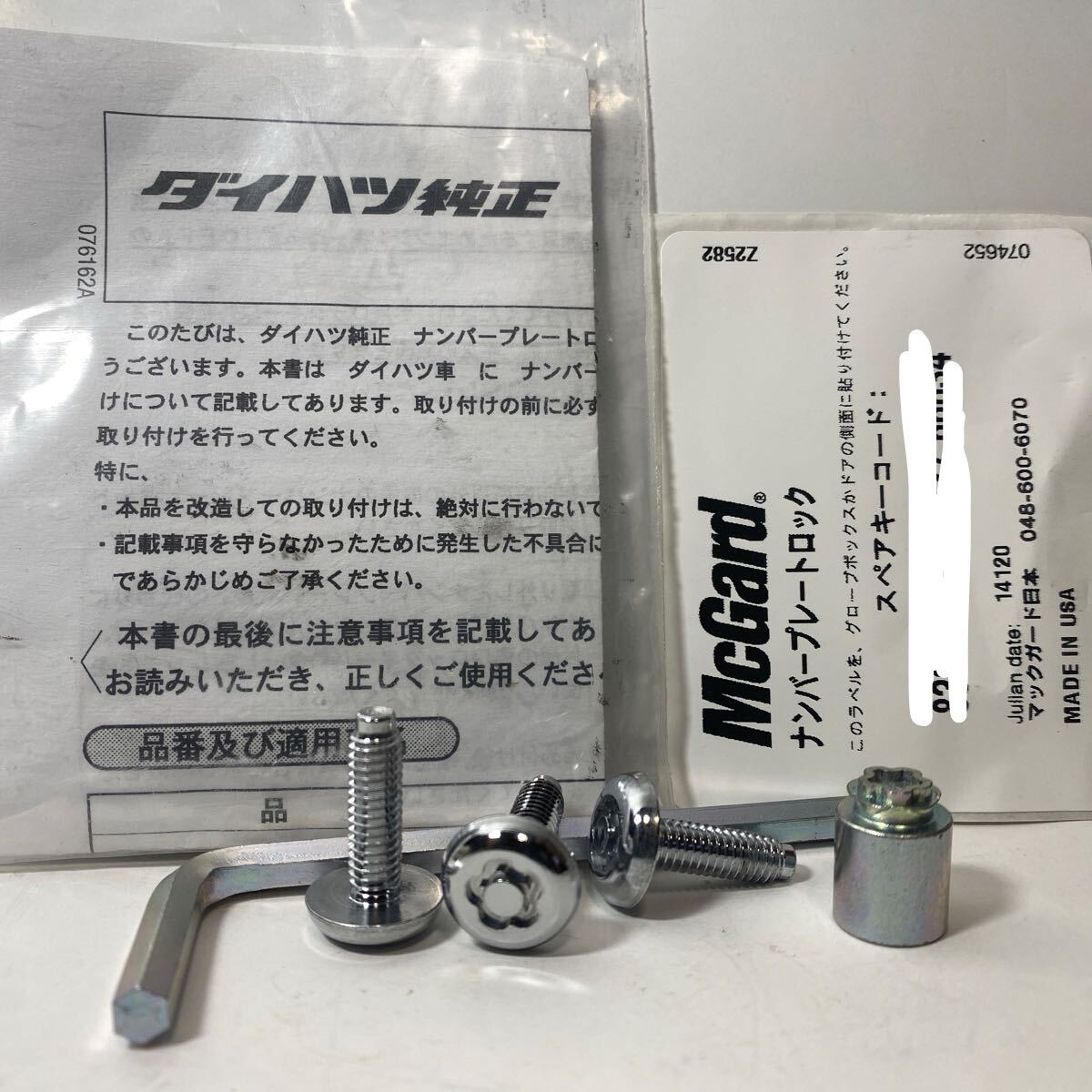 - ダイハツ純正 マックガード ナンバープレートロックボルト ロックボルト スペアキーコード 盗難防止 ダイハツ