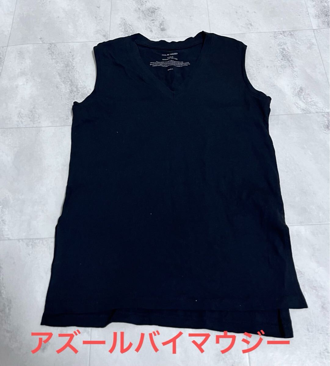 > AZUL BY MOUSSY アズールバイマウジー Vネック 裾スリット ノースリーブカットソー Sサイズ ブラック 黒