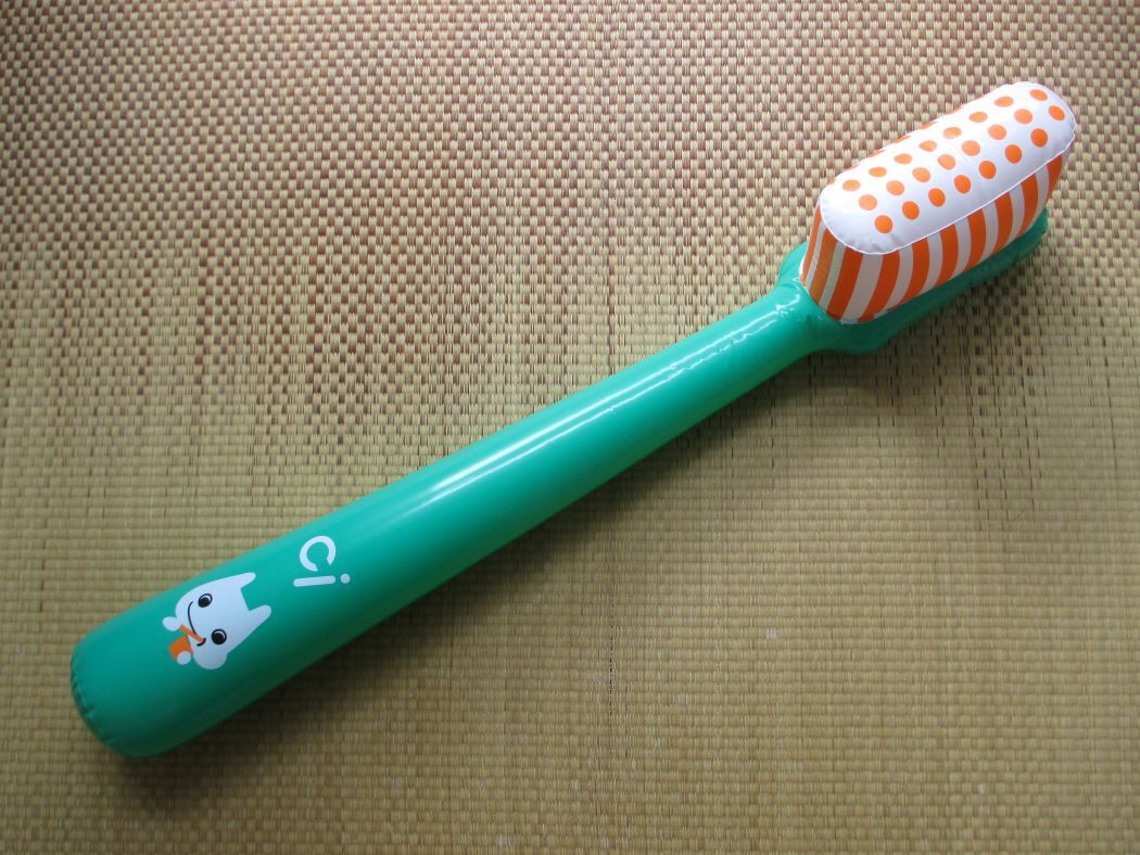 - 非売品◆ci 歯ブラシ形のビニールおもちゃ グリーン 緑 空気ビニール 空ビ 仮装 小物 歯医者 歯科衛生士