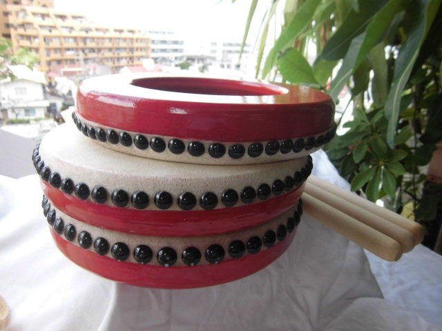 - **(送料無料) 12.000円 沖縄音楽芸術エイサーに最適 強化型牛皮パーランクー大 三個セット
