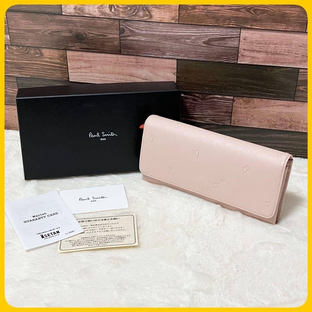 - 美品 箱付 ポールスミス 2つ折り 長財布 スミシーハート レザー 革 ピンク