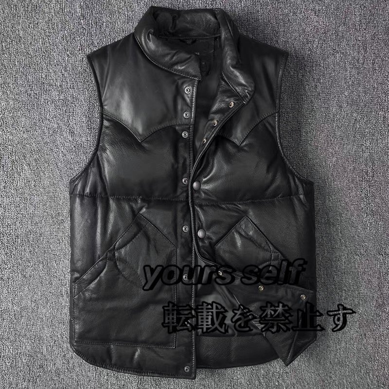 - 品質保証★高級感溢れ 柔らか ラム革 羊革 メンズ レザー ダウンベスト 高品質 ダウン ジャケット 着心地のいい ブラック (S~4XL)
