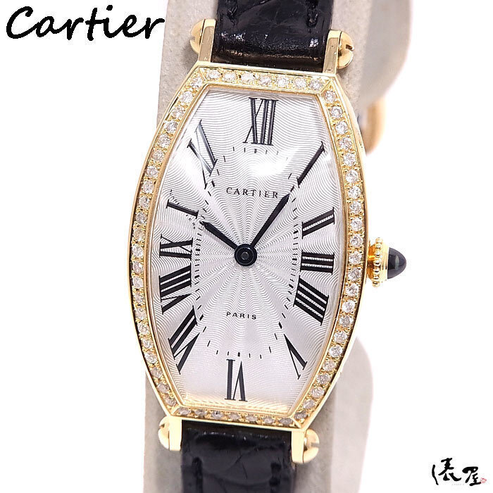 > 【カルティエ】トノー SM K18 ダイヤベゼル 手巻き 極美品 OH済 レディース ヴィンテージ 時計 Cartier Tonneau 俵屋