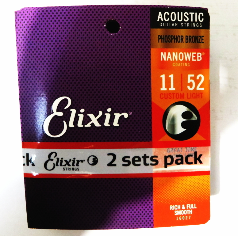 - x2セットElixir アコースティック弦 フォスファー ブロンズ カスタム ライト 11-52 #16027 エリクサー