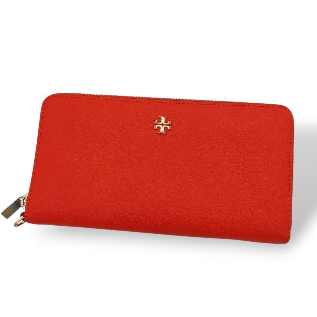 - 【良品】Tory Burch トリーバーチ 長財布 ウォレット ラウンドファスナー 赤 人気 ウォレット ゴールドロゴ ラウンドジップ