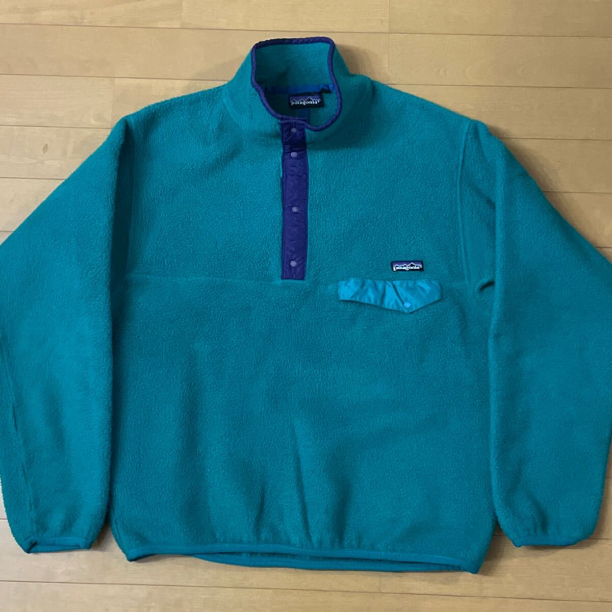 - グリーン パープル patagonia スナップT シンチラ フリース ビンテージ パタゴニア 前立てナイロン 90s 80s
