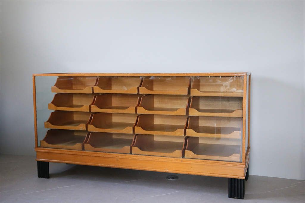 - 英国アンティーク◇16杯シャツキャビネット/ショップカウンター/ディスプレイケースガラステーブルドロワー店舗什器イギリスビンテージ家具