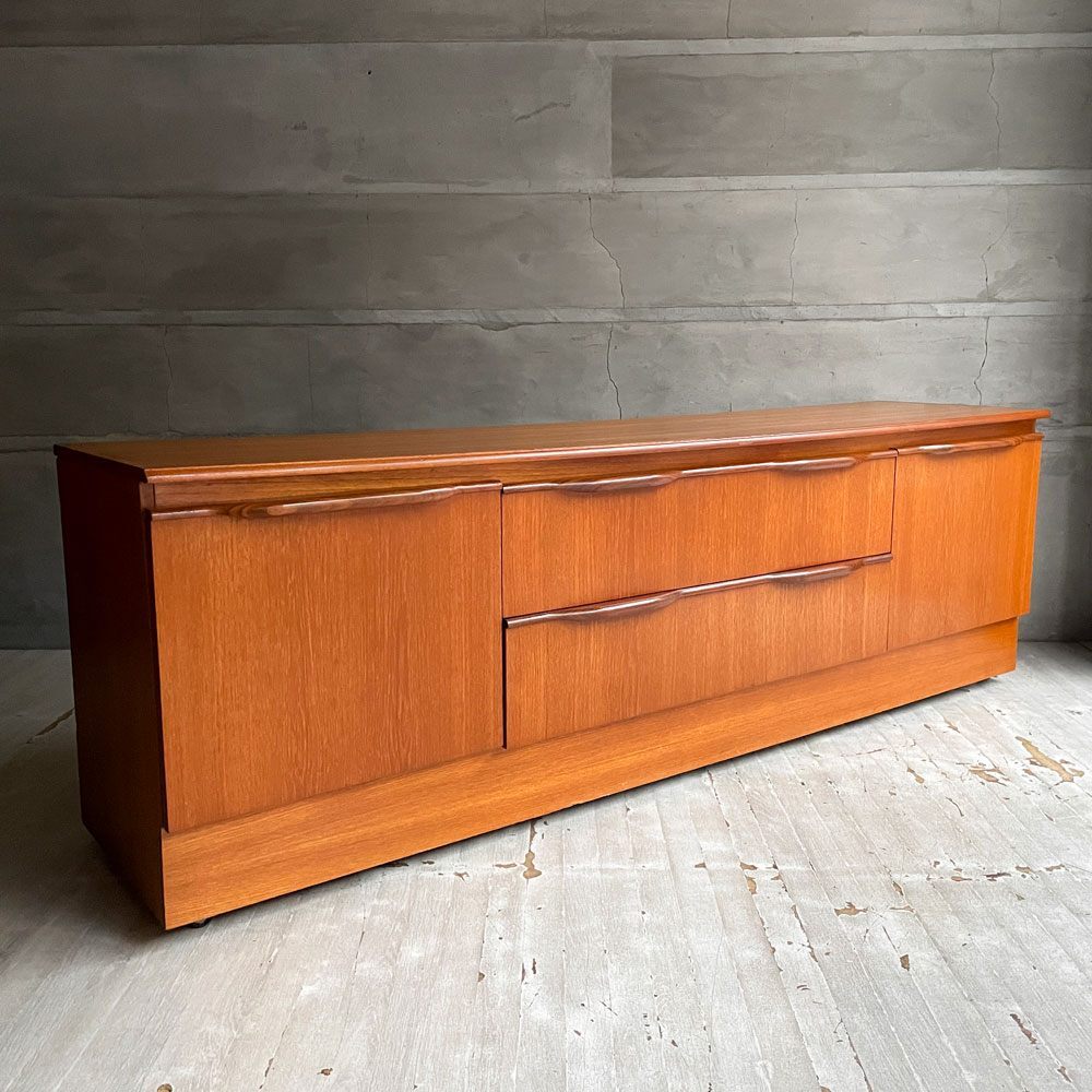 > ♪ UKビンテージ チーク材 ローボード AVボード サイドボード キャスター付き 2ドア 2ドロワー 英国家具 北欧スタイル