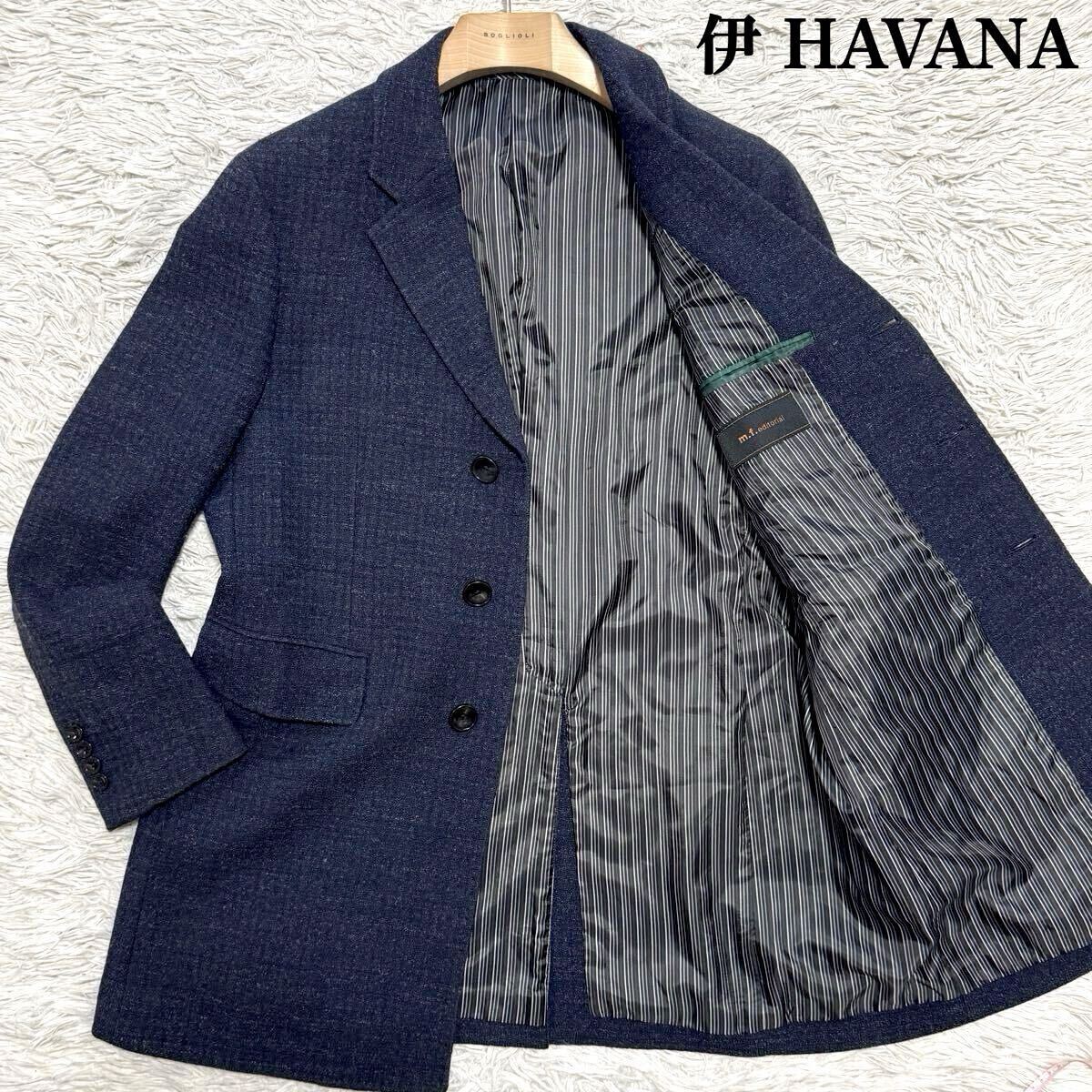- 希少L/極美品【至極の逸品】イタリア HAVANA ソフトツイード 2way チェスターコート ネイビー m.f.editorial チンスト 映え裏地 高級感◎