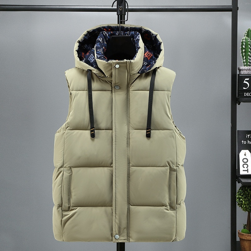 - 中綿ベスト ベスト ボア 袖なしジャケット フード 新品・メンズ キャンプ トップス カジュアルベスト【LES 502】緑系 5XL