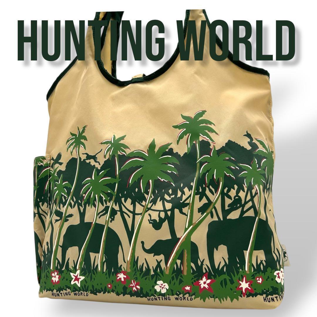 > 【希少】HUNTING WORLD ハンティングワールド ナイロン トートバッグ 総柄 良品 人気 アニマル 大きめ レアモデル 総柄