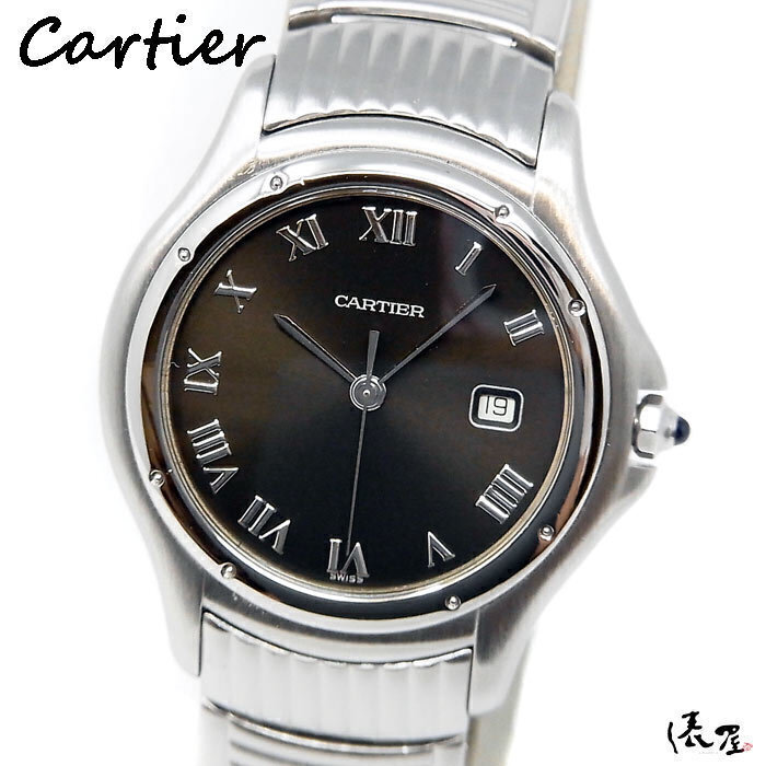 > 【カルティエ】ヴィンテージ パンテール クーガー LM 黒文字盤 メンズ 極美品 腕時計 Cartier 俵屋