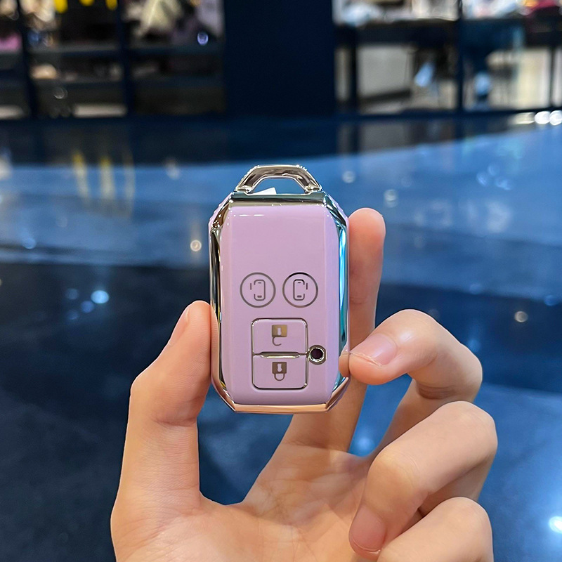 > スズキSUZUKI スマートキーケース TPU キーカバー ハスラー スペーシア ワゴン ソリオ パープル×シルバー