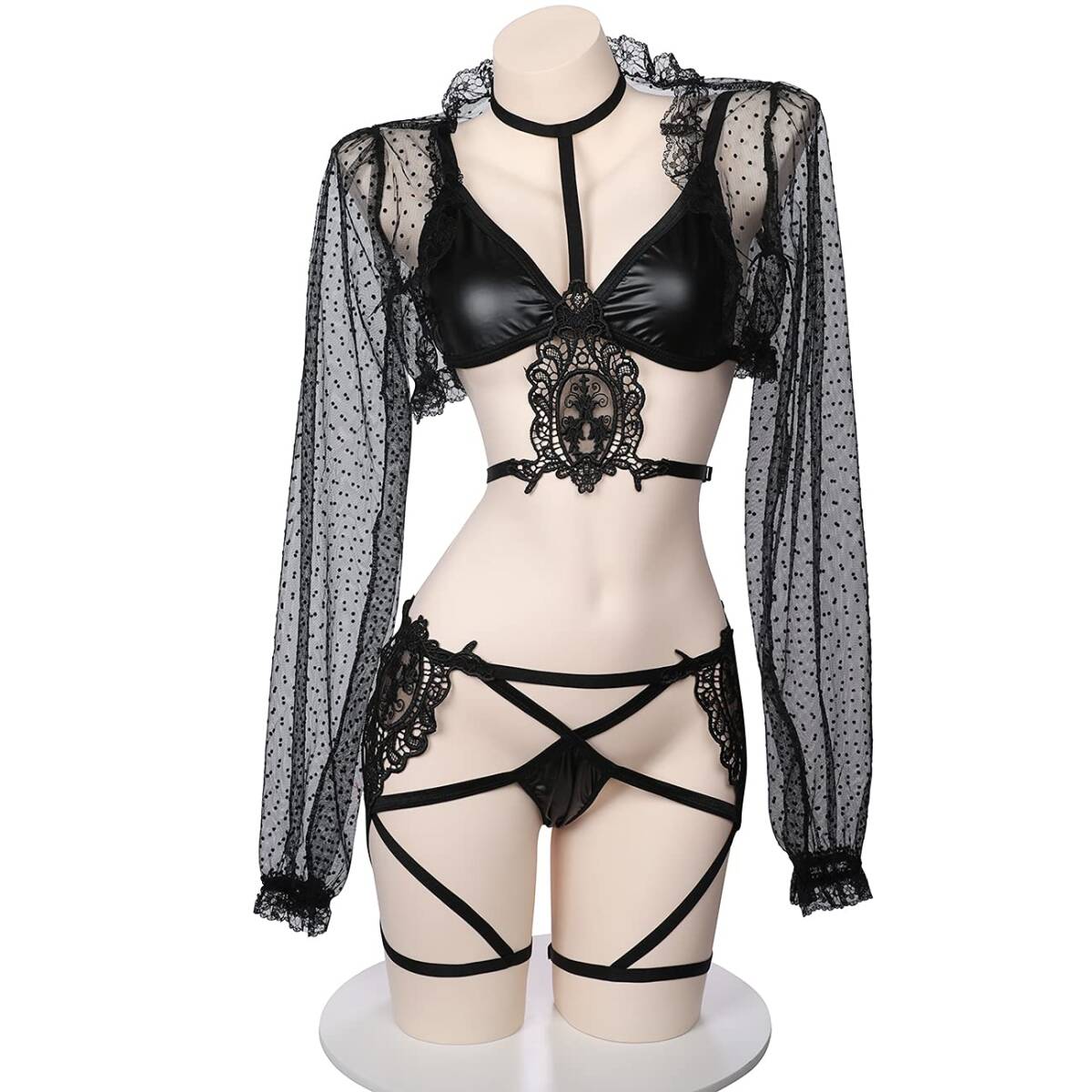- SENMHS コスプレ セクシー ビキニ 下着 レザー風 PU 衣装 ボンデージ ボディコン エナメル PVC 女王様 小悪魔 悪魔 魔女フェイク レザー