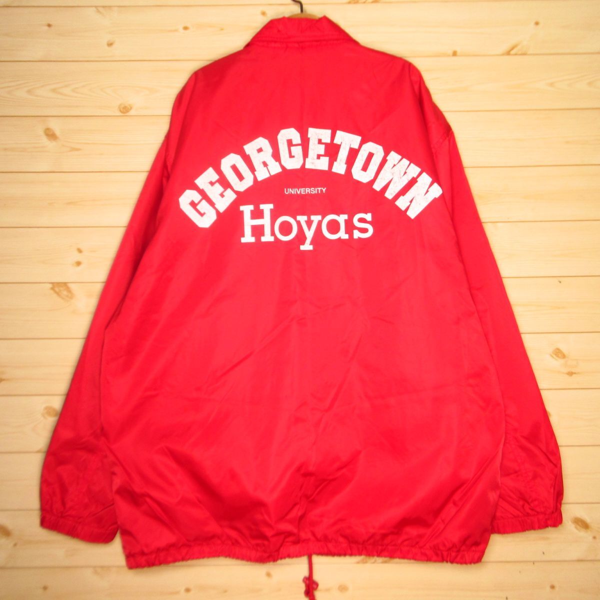 - ◎ジョージタウン大学 バスケットボール HOYAS ホヤス コーチジャケット カレッジ 裏起毛 ヴィンテージ メンズ 赤 XLサイズ◆AA4911