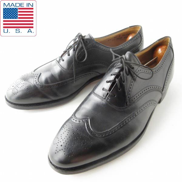 > 美品 USA製 ジョンストン&マーフィー Aristocraft ウィングチップ 黒 27cm程度 ショートウィング 高級ライン アメリカ製 D151-32-0054ZV