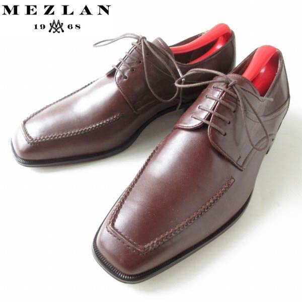 > 新品 高級品 MEZLAN メスラン 外羽根 モックトゥ シューズ 茶系 8.5W 幅広26.5cm シューキーパー付き スクエアトゥ 靴 D138-32-0003ZT