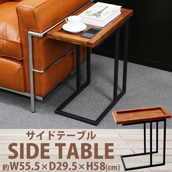 - 送料無料 サイドテーブル チーク材 約W55.5×約D29.5×約H58(cm) ベッドサイド コーヒーテーブル ソファーテーブル ミニテーブル 継目 木目