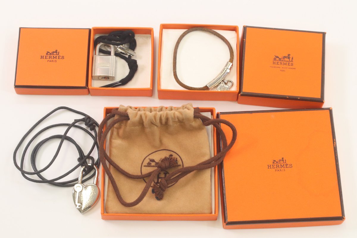 - 【3点】HERMES エルメス ファンタジーハート ネックレス レザーブレス/カデナ 114 パドロック シルバーカラー アクセサリー まとめ 3401-K