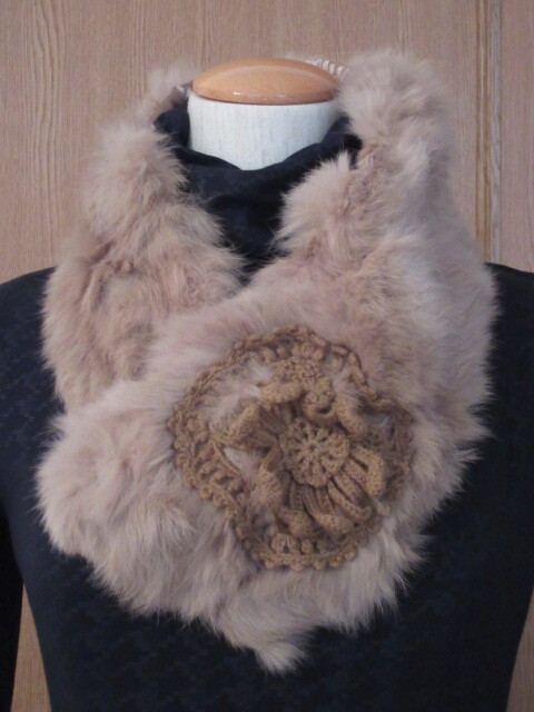 > ■【LOWRYS FARM ローリーズファーム】■ラビットファー&手編みお花モチーフがアクセントに!■ピン付き簡単装着!