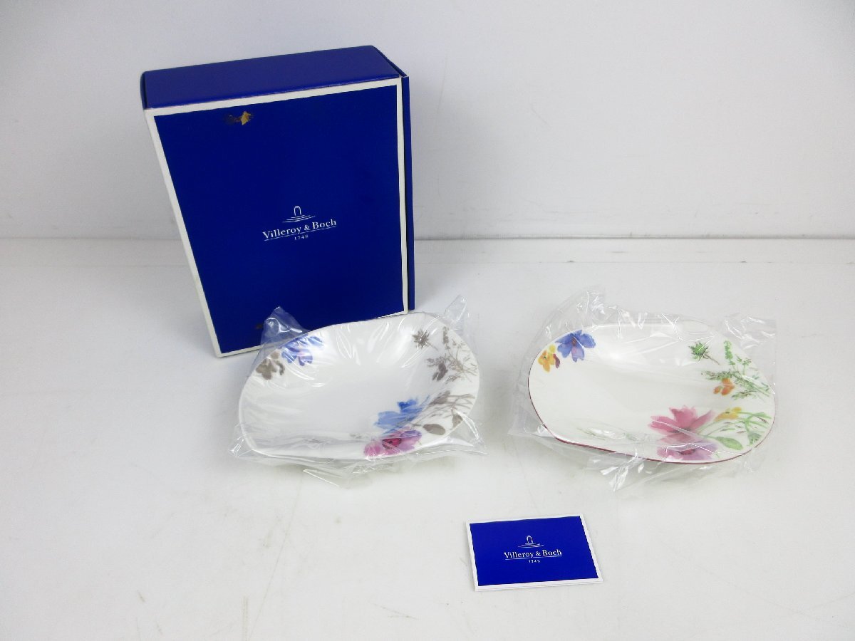 > 【新品未使用】 Villeroy&BOCH 古い陶器のラヴィエ 花の絵柄 2枚セット フランス アンティーク / 80 (SGKY023855)