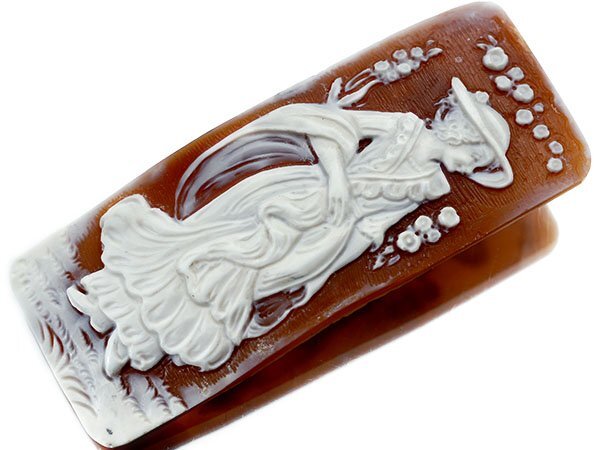 - 【ジュエリー極】作家品 サイン刻印有 希少な貴婦人全身像 シェルカメオルース 60.0mm×24.0mm a2742o【送料無料】