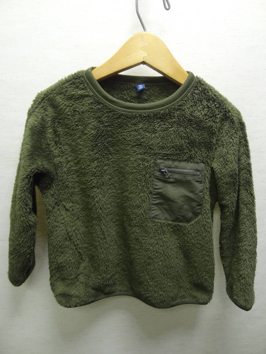 > 全国送料無料 ユニクロ UNIQLO 子供服キッズ 男&女の子 カーキーグリーン色 ファーフリースプルオーバーシャツ 110