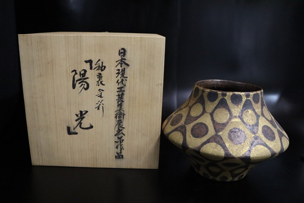 > 【江】極上 九谷焼 北村隆作 釉裏金彩『陽光』銘大花瓶 直径50㎝×高さ34㎝ 在銘 共箱 古美術品(花器花生花入飾壺)XZ106 JTDBffgd DTDBvzcx