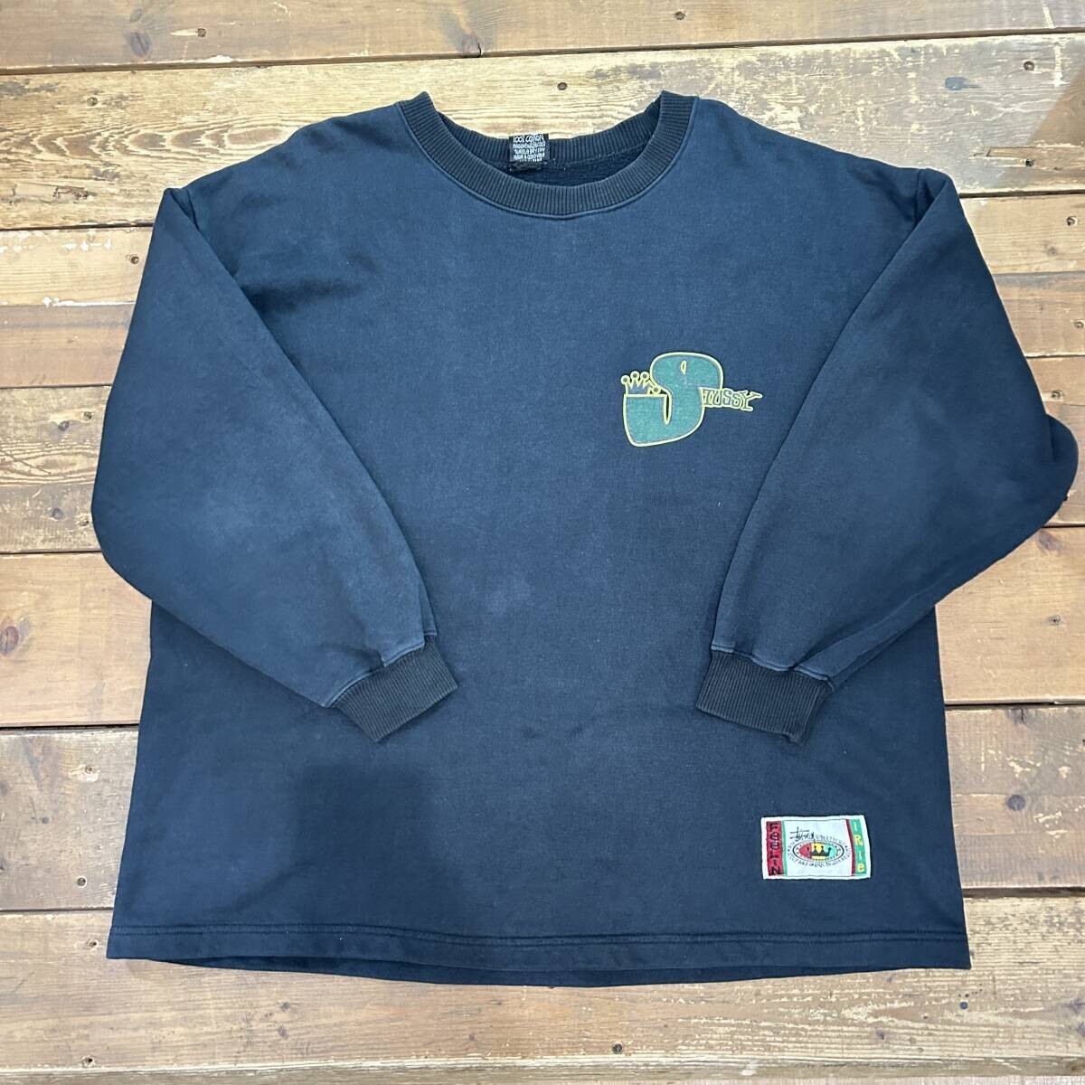 > 80S VINTAGE OLD STUSSY / オールドステューシー 両面プリント 中折れクラウン スウェット 黒タグ フリーサイズ USED