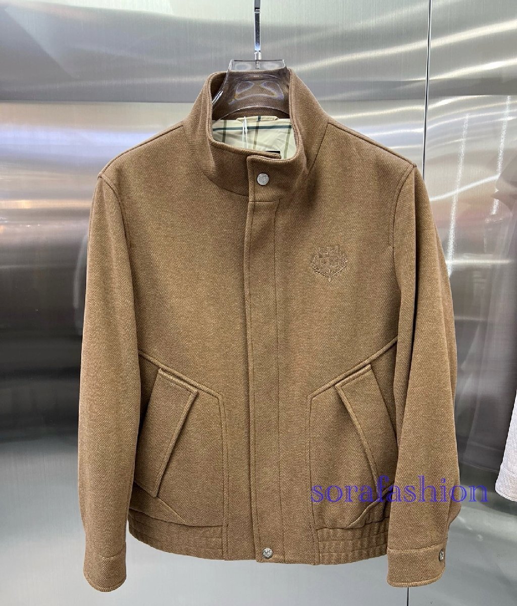 > Loro Piana ロロピアーナ メンズジャケット ブルゾン ブラウン L ジップアップ コート スカジャン アウター ジャンパー 紳士服 ヘリンボン