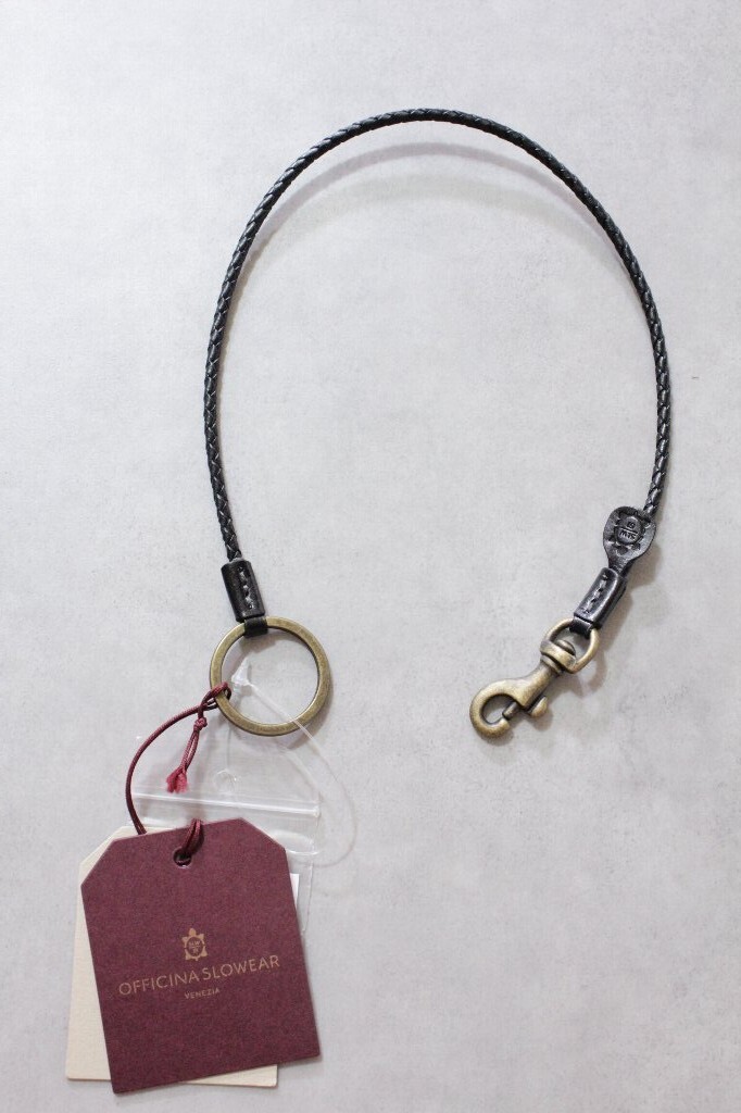 > OFFICINA SLOWEAR★新品1万円 スローウェア 編み込みレザーキーチェーン黒 インコテックスにおすすめ ウォレットチェーン キーホルダー