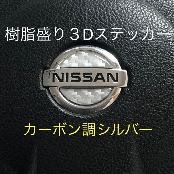 - 日産 ステアリング エンブレムシート カーボン調シルバー SDH-N01 樹脂盛立体3D ハンドル ZEROWIN NISSAN 簡単取付