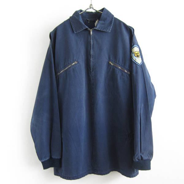 - 一点物 ビンテージ ハーフジップ プルオーバージャケット ハの字ポケット付き M程度 紺 ネイビー 希少 レア ノルウェイ製 D93-18-0006ZVW