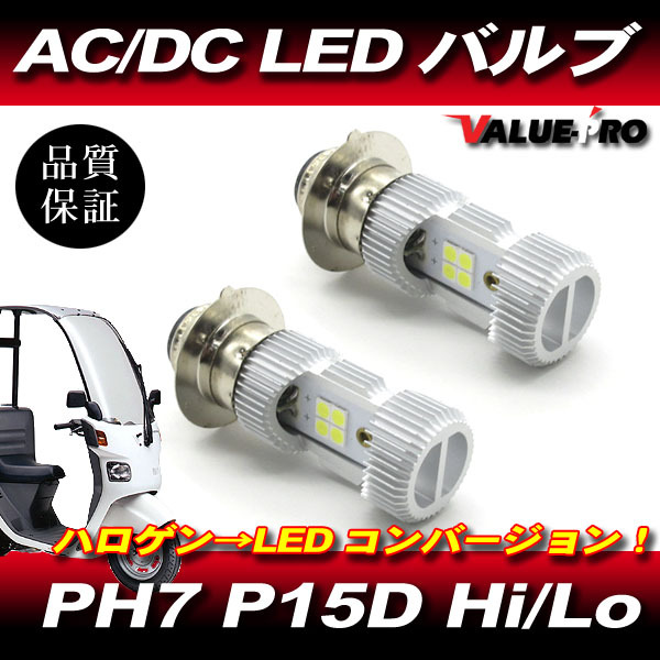 - PH7 P25D T19 LED バルブ Hi/Lo 6000K 1600Lm 2灯分◆ 直流 交流OK ジャイロキャノピー ズーマー TA02 TA03 他