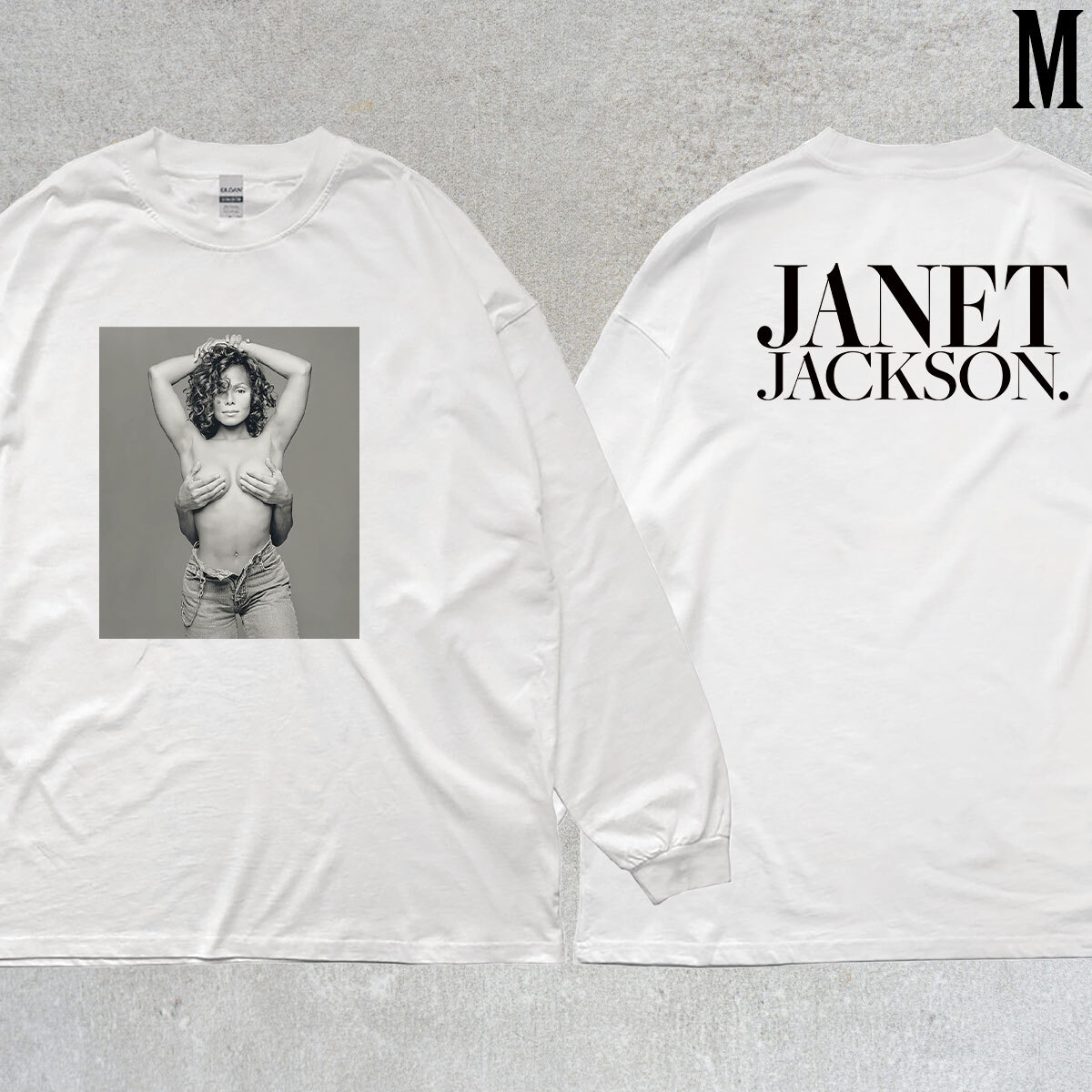 - ジャネット ジャクソン JANET JACKSON フォトプリント バックプリント リブ付き 長袖 Tシャツ ロンT 6oz 綿100% シロ M