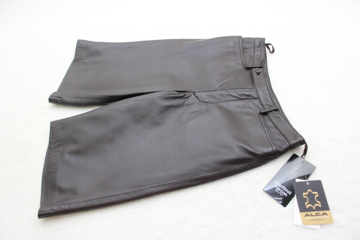 - 5606 新品タグ付き 高級羊革レザーショートパンツ ブラウン9号 定価¥29,000+税