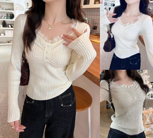 - ニット 長袖 スリム 着痩せ カットソー シンプル フリー ホワイト