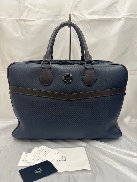 - dunhill ダンヒル ビジネスバッグ ブリーフケース シャーシ ガーズマンA4収納 メンズ レザー 書類鞄 紺色 茶色