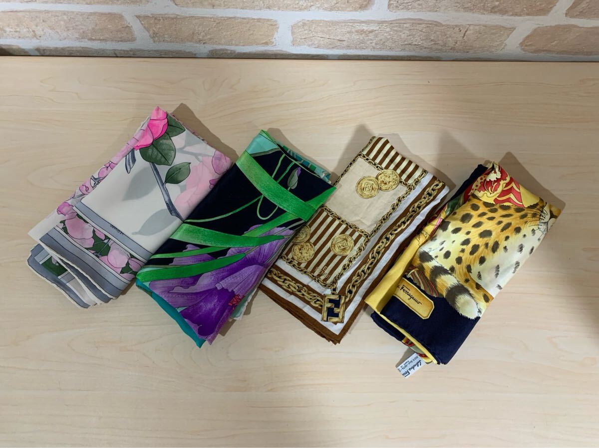 - A10-129 Leonard レオナール Salvatore Ferragamo サルヴァトーレ フェラガモ スカーフ FENDI フェンディ ハンカチ ブランド まとめ セット