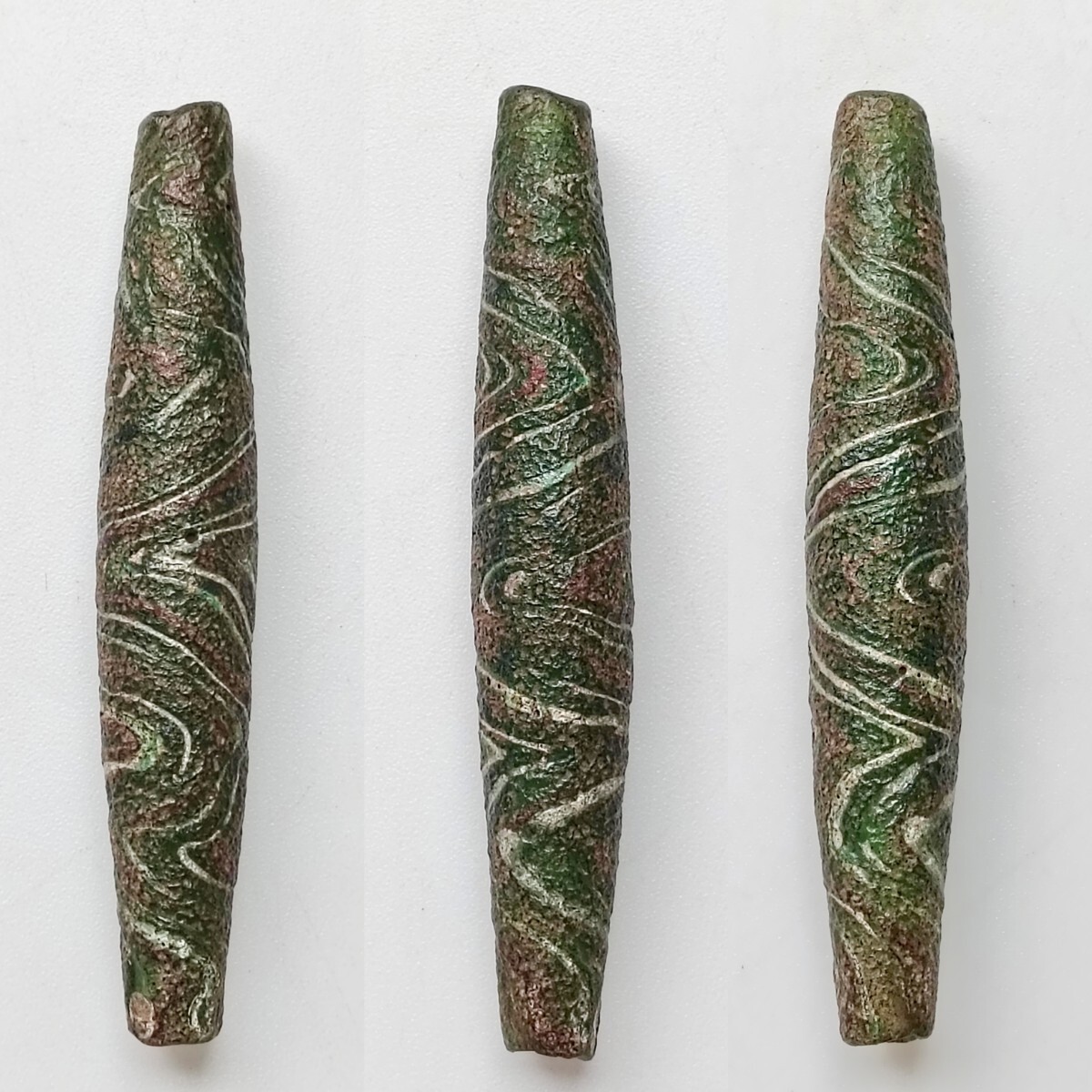 - 【A4233】時代トンボ玉1本 緒締玉 提げ物 装飾品 根付 骨董品 アンティーク 長さ約64.4cm 重さ約10.4g
