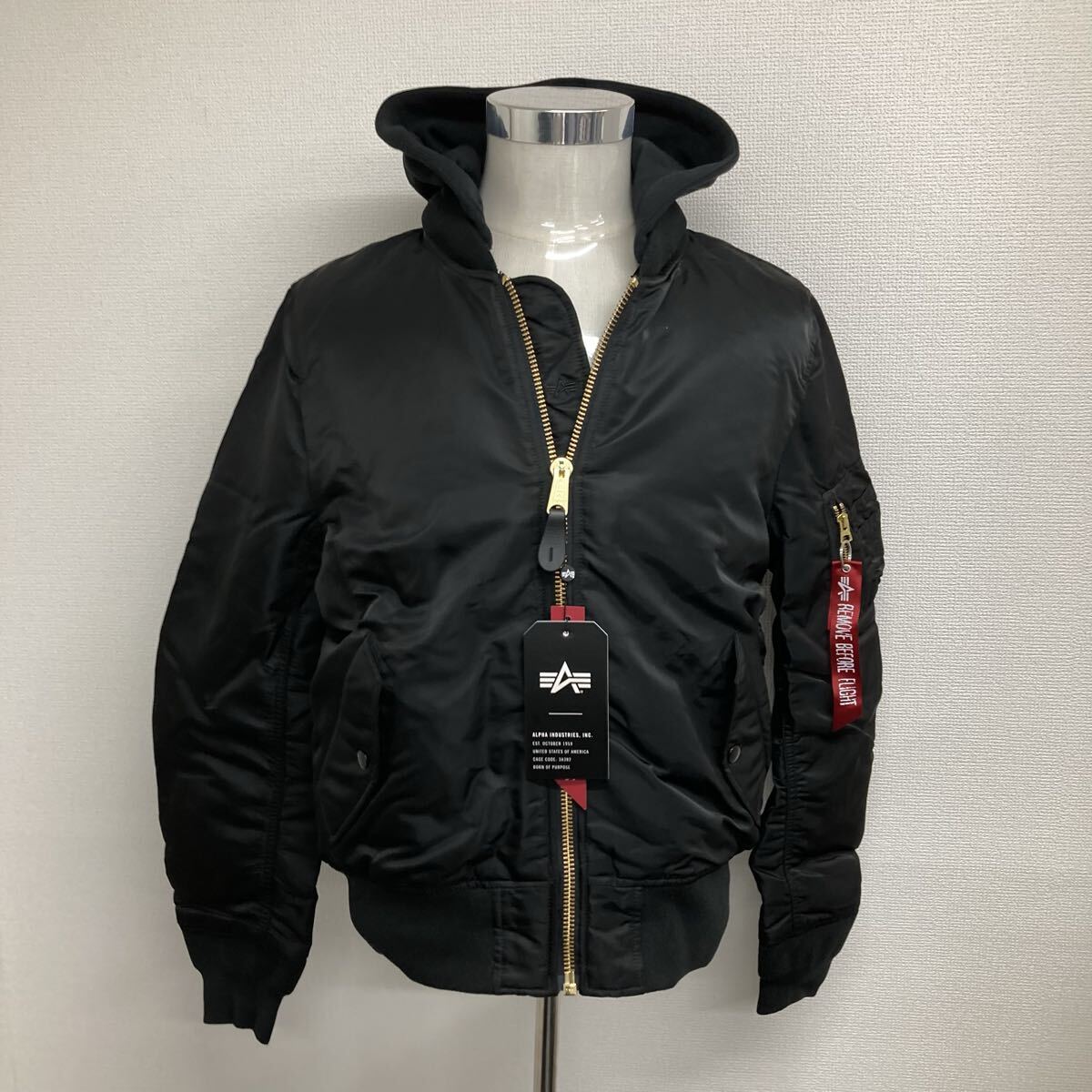 > F467 ALPHA INDUSTRIES アルファ MA-1 ジャケット ユニセックス Mサイズ 黒 ブラック フライトジャケット 秋冬 フード タグ付き