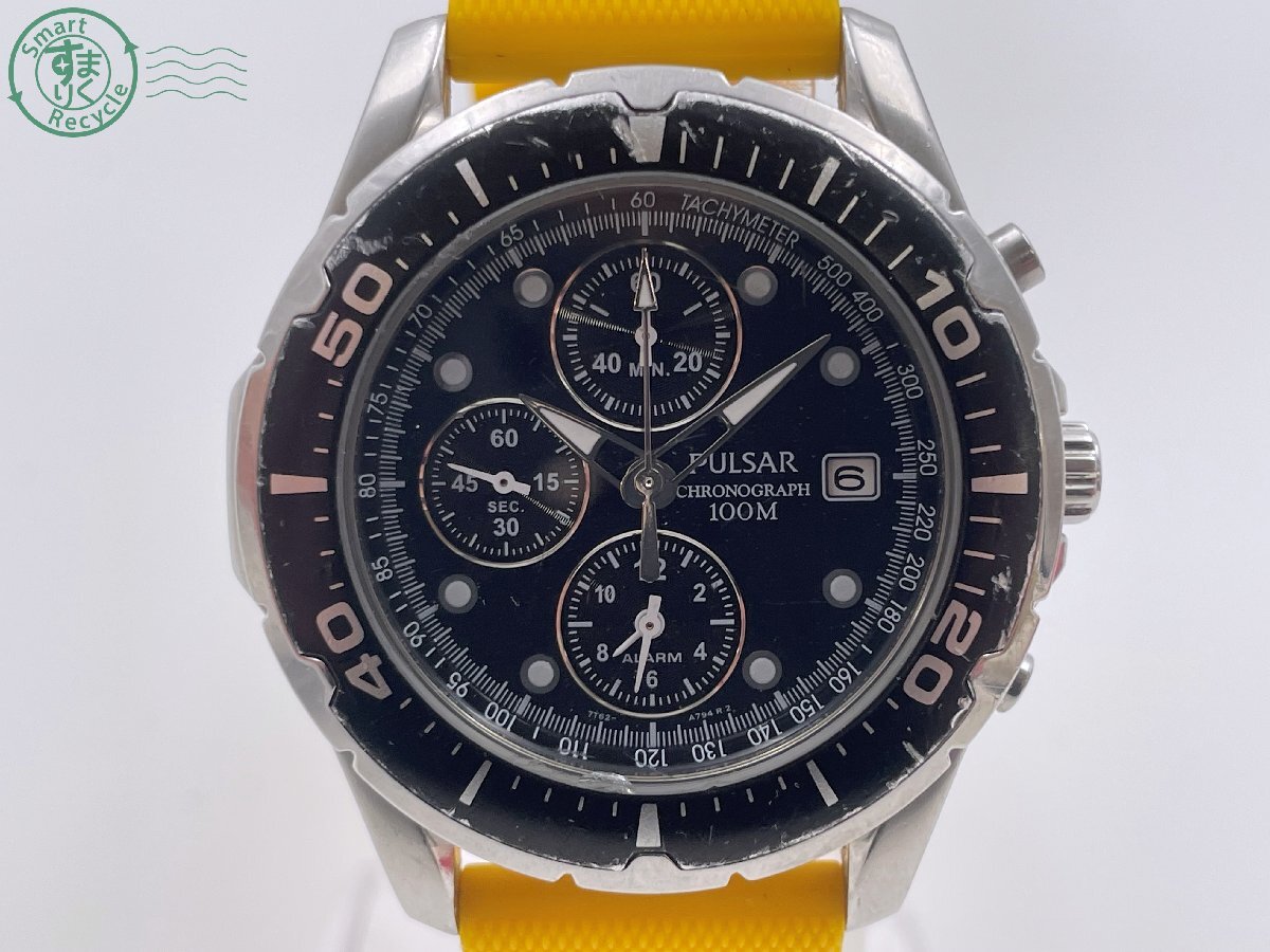 > BJ0707347 △SEIKO セイコー パルサー 7T62-K088 クォーツ アナログ ラウンド シルバー系 メンズ 腕時計 3針 デイト 不動 中古