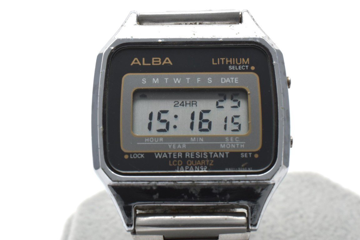 > 稼働品 ALBA LITHIUM QUARTZ アルバ クォーツ スクエア レクタングル 腕時計 3針 メンズ レディース W401-5050