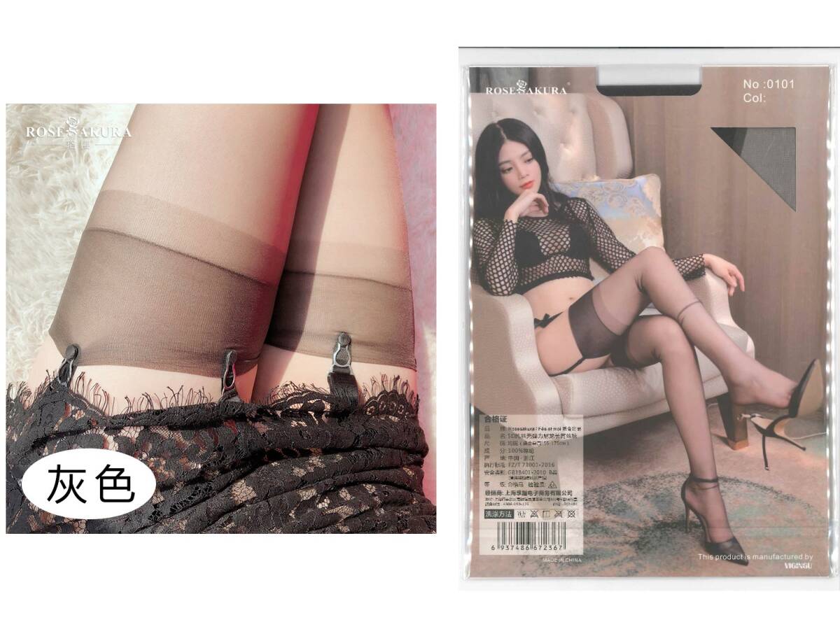 - グレー色 Rosesakura/品番0101/ 5デニール光沢/100% ナイロン/シームレスガーターストッキング